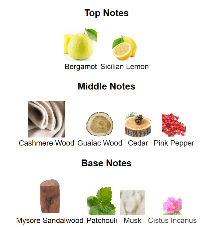 Danaë awakens with bright bergamot & Sicilian lemon, folds into spicy pink pepper, guaiac & cashmere woods, and settles into patchouli, sandalwood & musk magic.