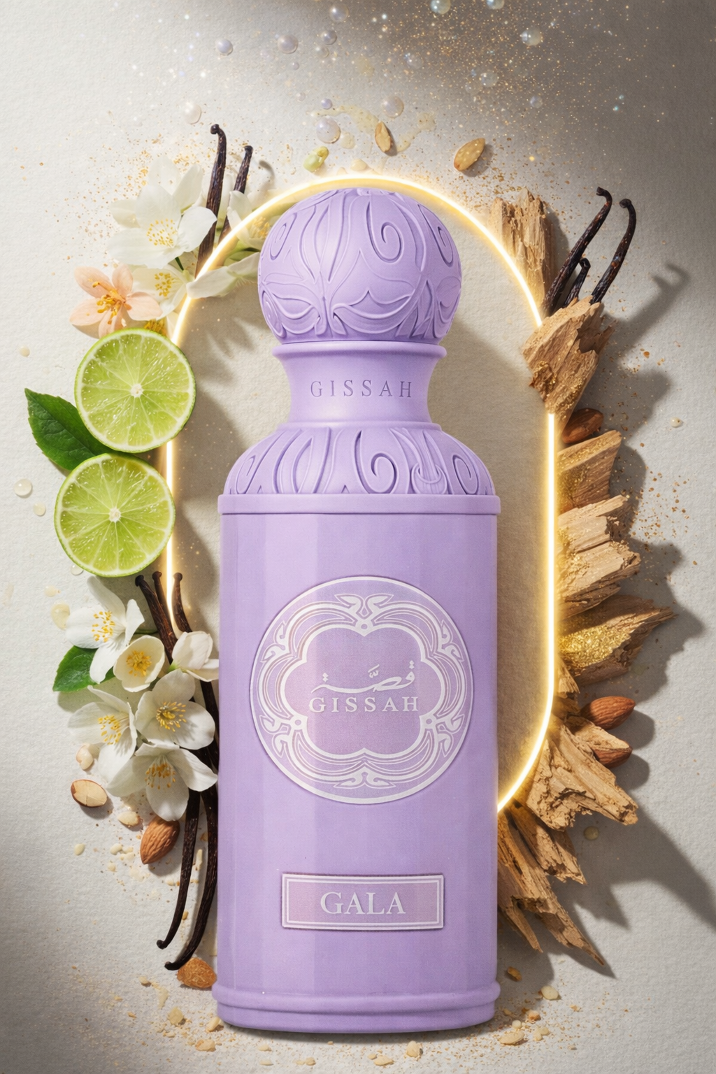 Gala by Gissah is a sweet floral-woody fragrance with a creamy citrus opening and a soft, comforting drydown.